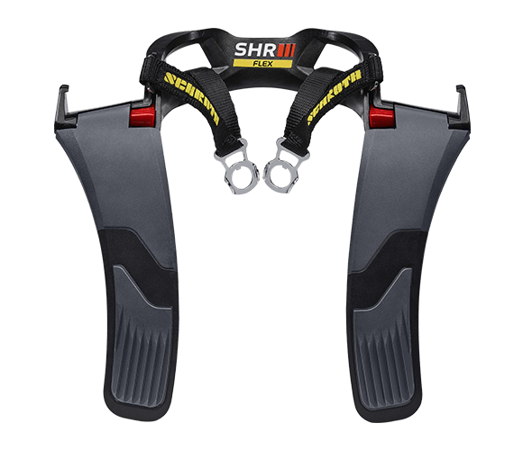 Shop Schroth SHR Flex »SCHROTH Racing is first to reveal the next generation of driver safety technology with the introduction of its SHR FLEX® series of head and neck devices for North American racers – now certified to SFI 38.1 for use with standard 3" racing belts as well as FHR specific 2" shoulder belts.